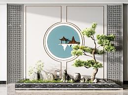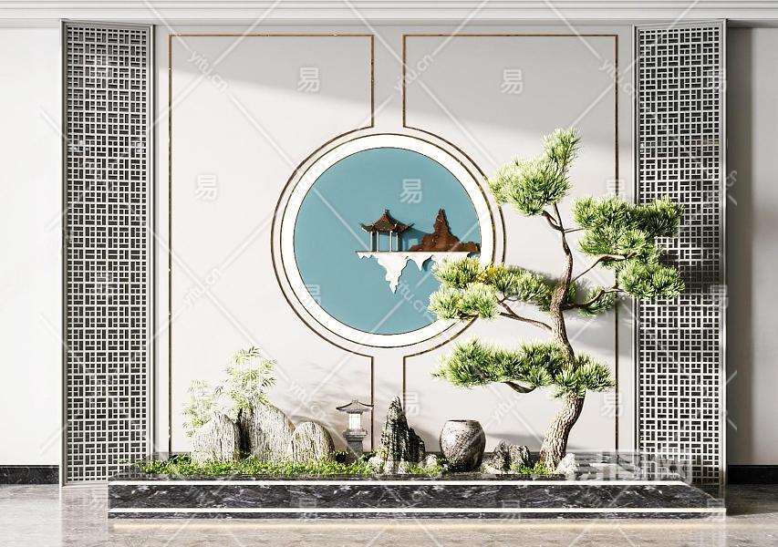 新中式庭院小品 假山石头小品 松树 假山 山石景观 石灯 雕塑 造景树 景观池