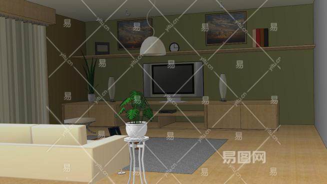 现代电视室客厅SU模型下载_sketchup草图大师SKP模型