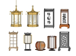 中式路灯景观灯su模型,简约景观灯sketchup模型下载