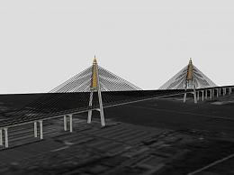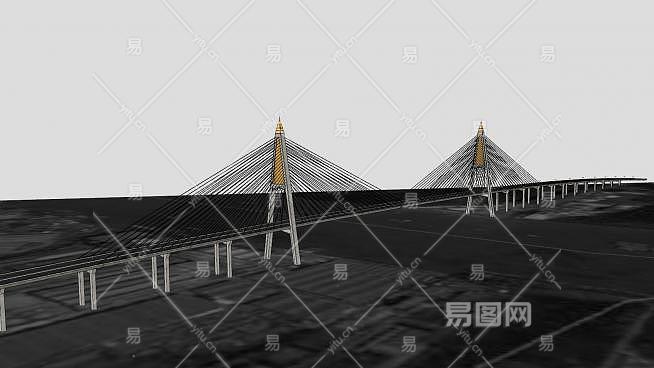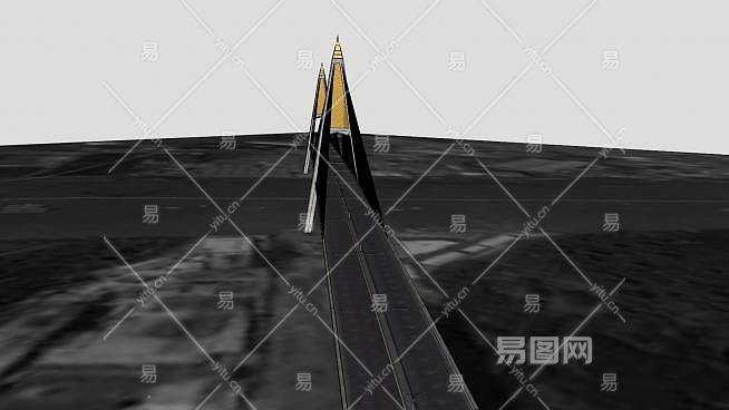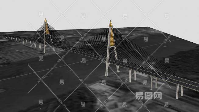 钢索斜拉桥SU模型下载_sketchup草图大师SKP模型