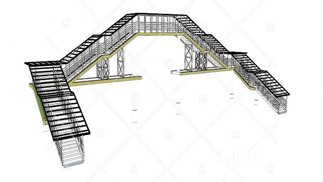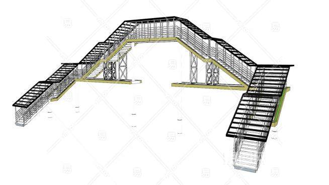 现代钢结构天桥SU模型下载_sketchup草图大师SKP模型