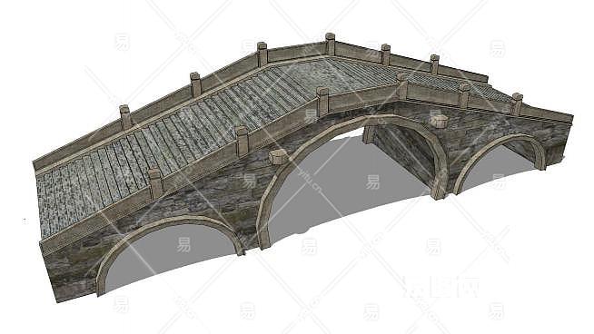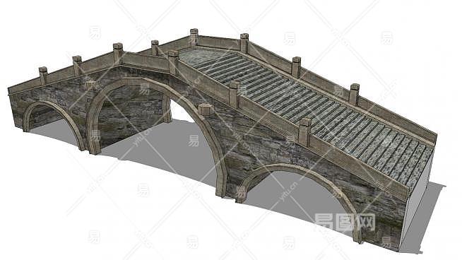 三孔石拱桥su模型下载_sketchup草图大师SKP模型