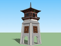 中式塔楼草图大师模型skp模型,塔楼sketchup模型skp文件下载