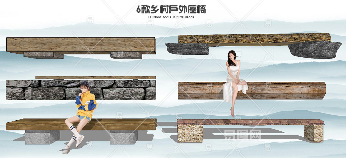 现代景观座椅 公共座椅 户外长椅 生态座椅 乡村农村坐凳 条形座椅