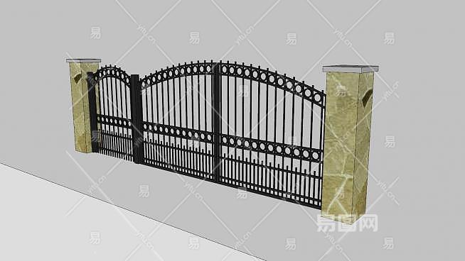 铁艺大门围墙SU模型下载_sketchup草图大师SKP模型
