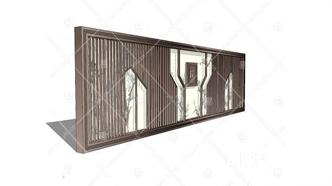 现代中式景墙围墙SU模型下载_sketchup草图大师SKP模型