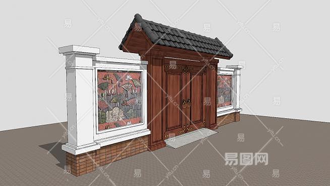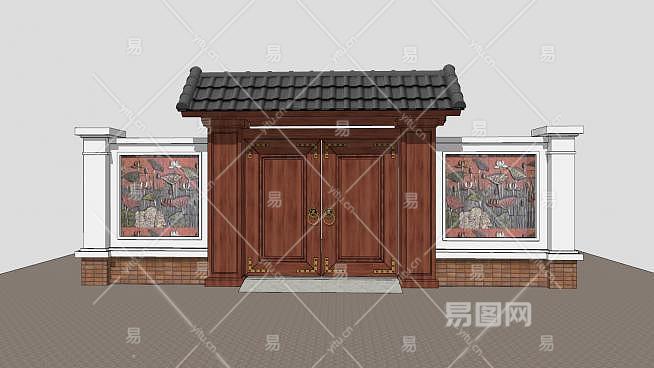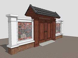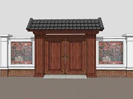 中式合院大门景墙SU模型下载_sketchup草图大师SKP模型