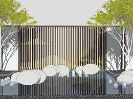 新中式景观墙水景墙SU模型下载_sketchup草图大师SKP模型