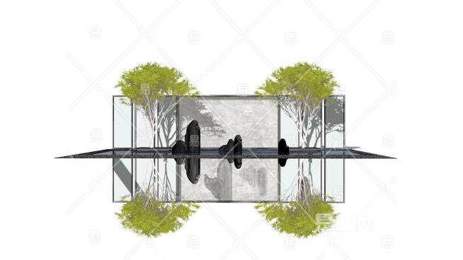 新中式山水景墙SU模型下载_sketchup草图大师SKP模型
