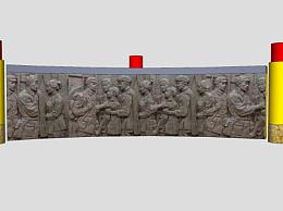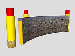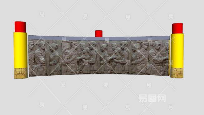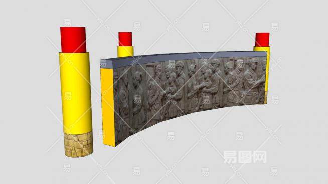 红军革命纪念弧形景墙石柱SU模型下载_sketchup草图大师SKP模型