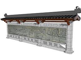 中式雕刻壁画屋檐景墙SU模型下载_sketchup草图大师SKP模型
