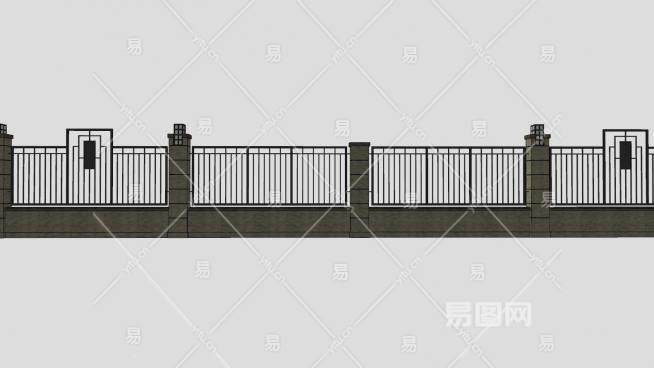 现代铁艺护栏围墙SU模型下载_sketchup草图大师SKP模型