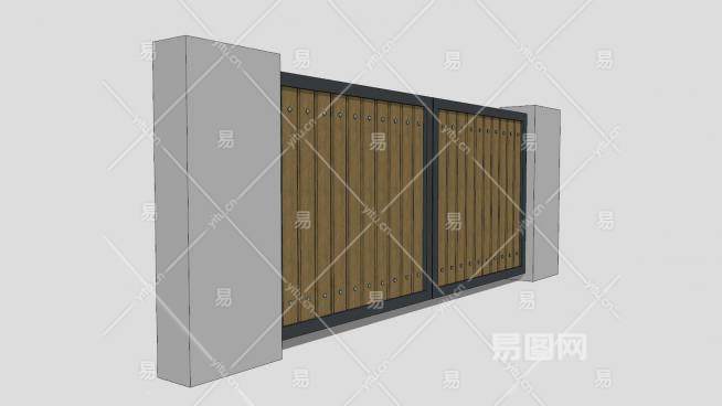 木制铁皮围墙SU模型下载_sketchup草图大师SKP模型