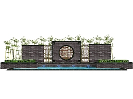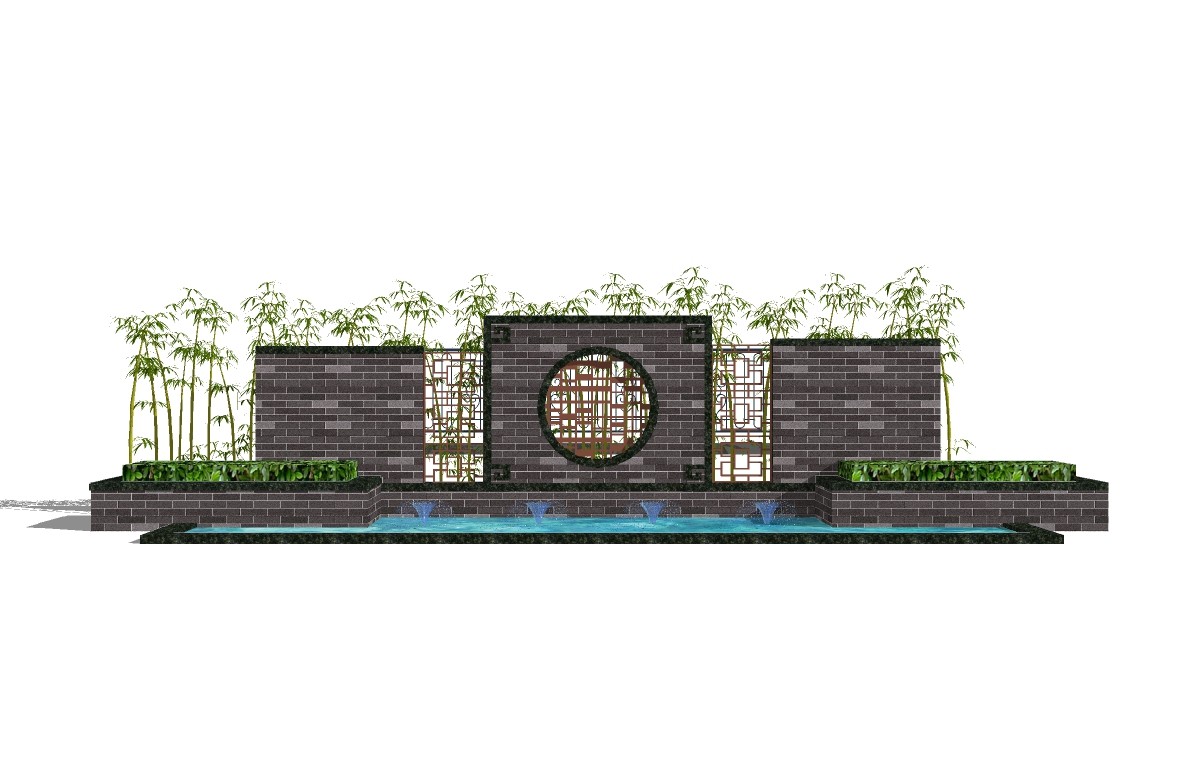 新中式景观墙草图大师模型,景观墙sketchup模型下载