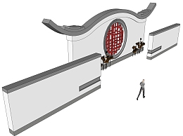 中式照壁景墙sketchup模型下载