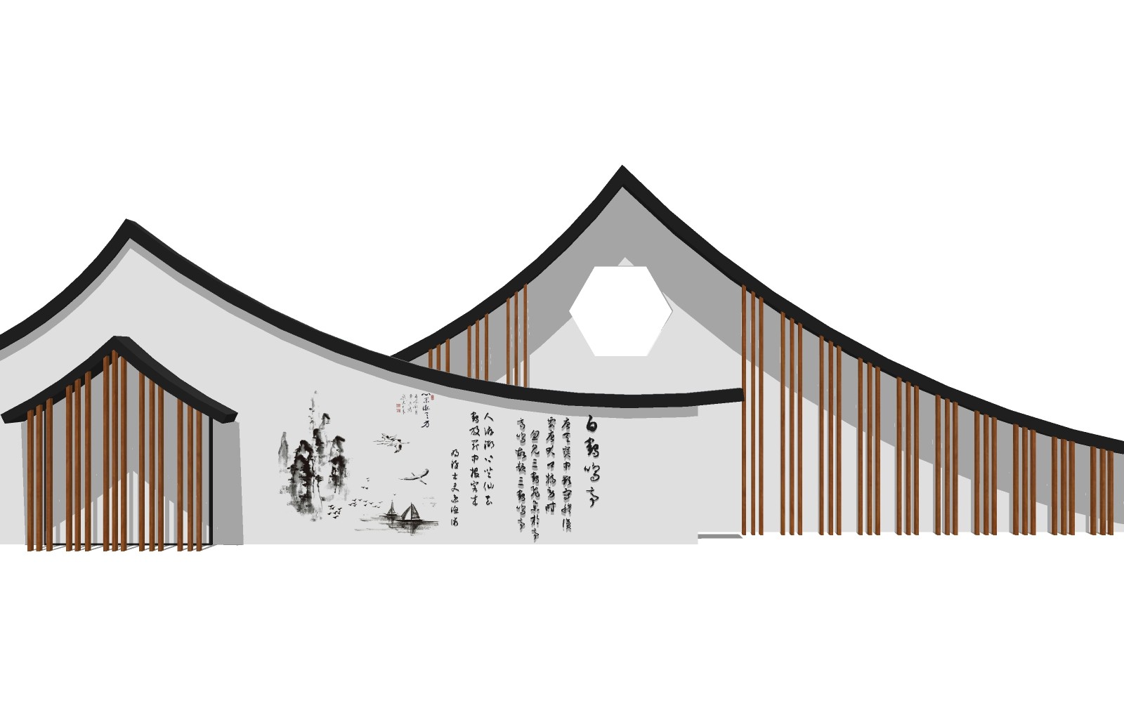 新中式文化景观墙草图大师模型,文化景观墙sketchup模型免费下载