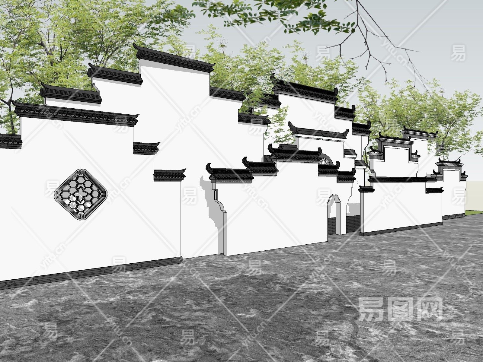 当前的位置:首页 > sketchup > sketchup模型 > 景观小品 > 景墙围墙 > 新中式马头墙徽派影壁景墙屋檐房檐