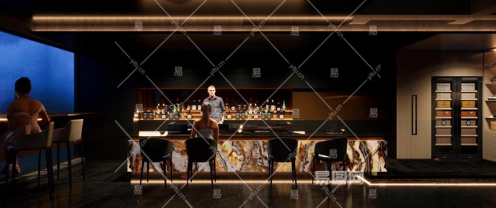 现代威士忌酒吧 深渊镜 吧台 酒柜