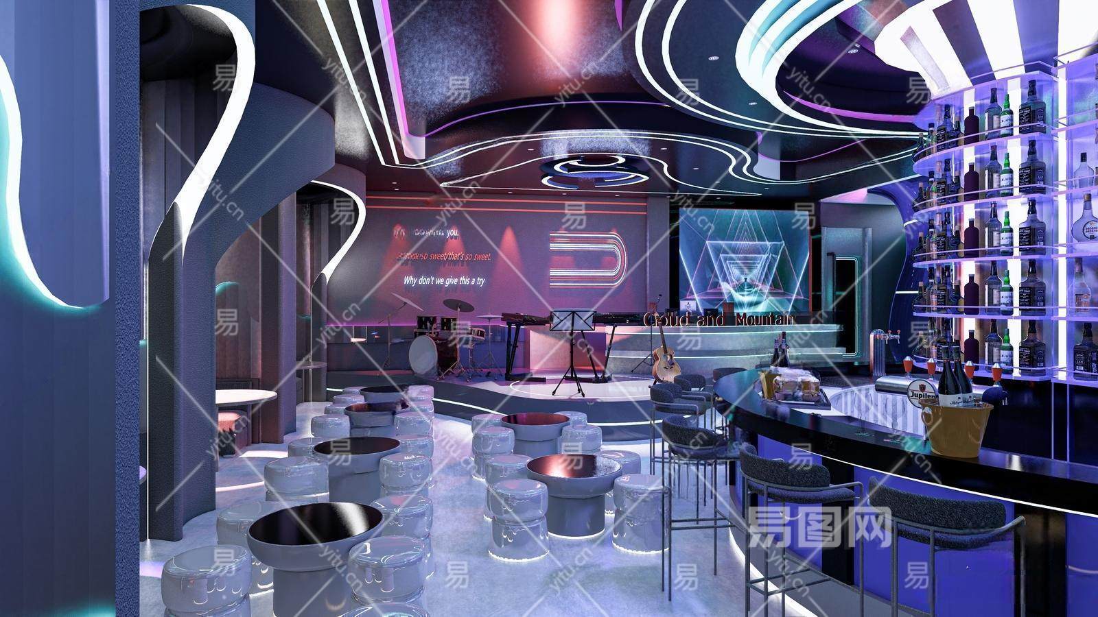 现代酒吧 夜店 清吧吧台酒水 娱乐消费场所蹦迪 演唱会 舞台