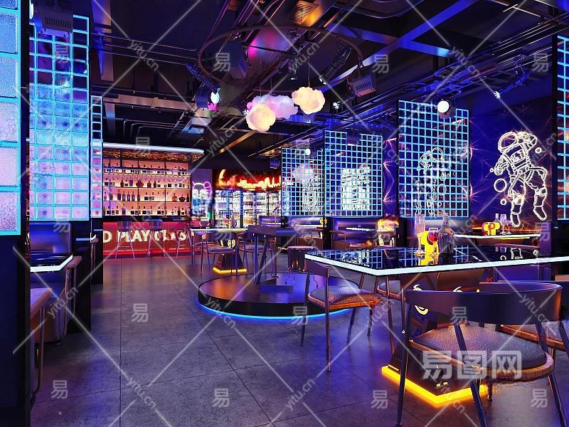 工业风酒吧 音乐酒吧 餐桌椅组合 卡座 酒吧台 酒架 吊灯