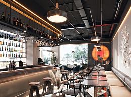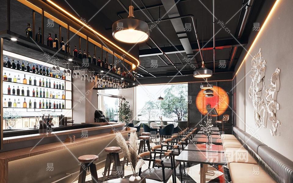 工业风酒吧 操作台 水吧台 餐桌餐椅组合 吊灯