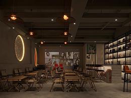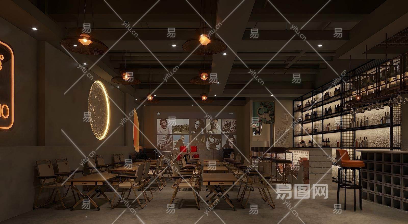 工业风酒吧 音乐餐厅 餐桌椅组合 酒吧台 吧台凳 酒架 月球肌理