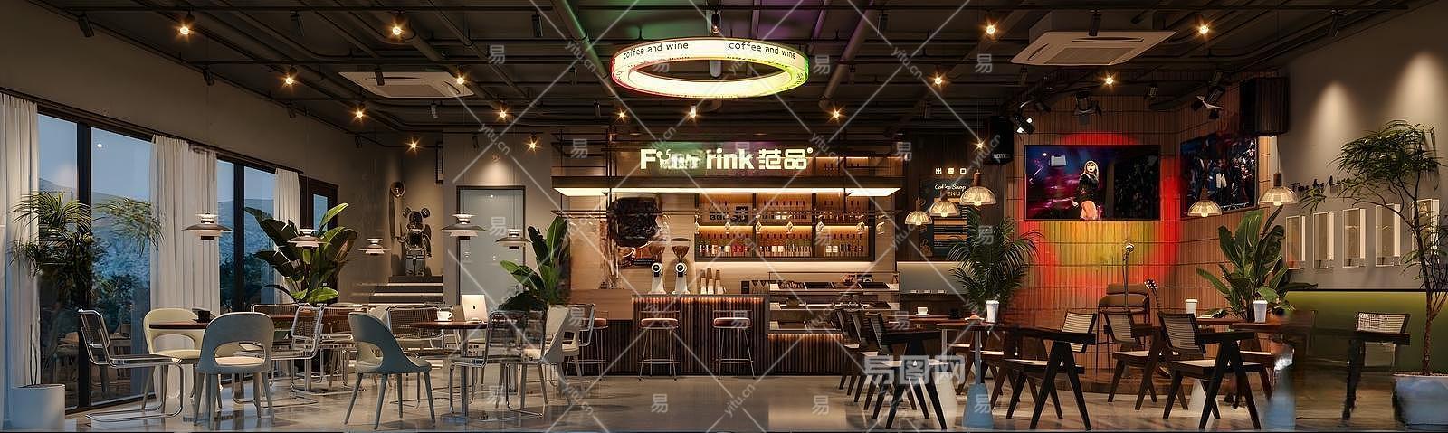 工业风酒吧 餐桌椅组合 水吧台 吧台凳 酒架 音乐酒吧