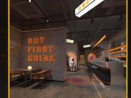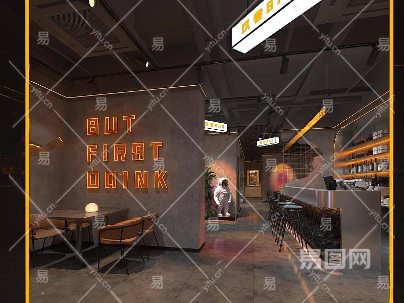 工业风酒吧 餐椅桌椅 吧台 落地摆件 绿植