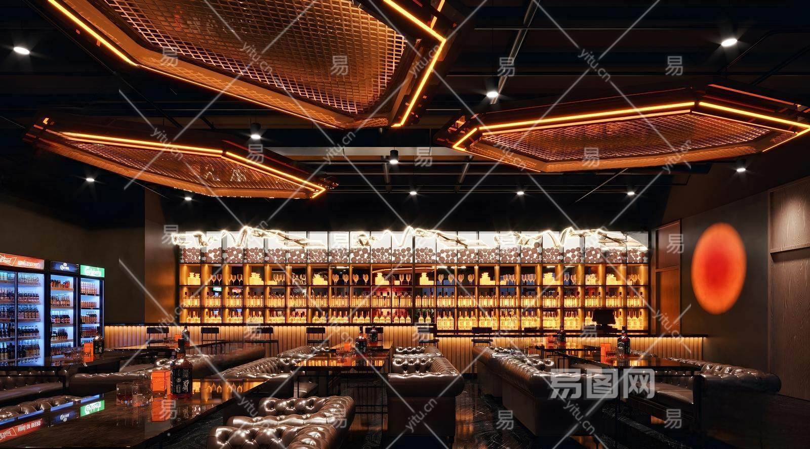 现代科技风酒吧 酒柜 酒架 吧台凳 皮质沙发