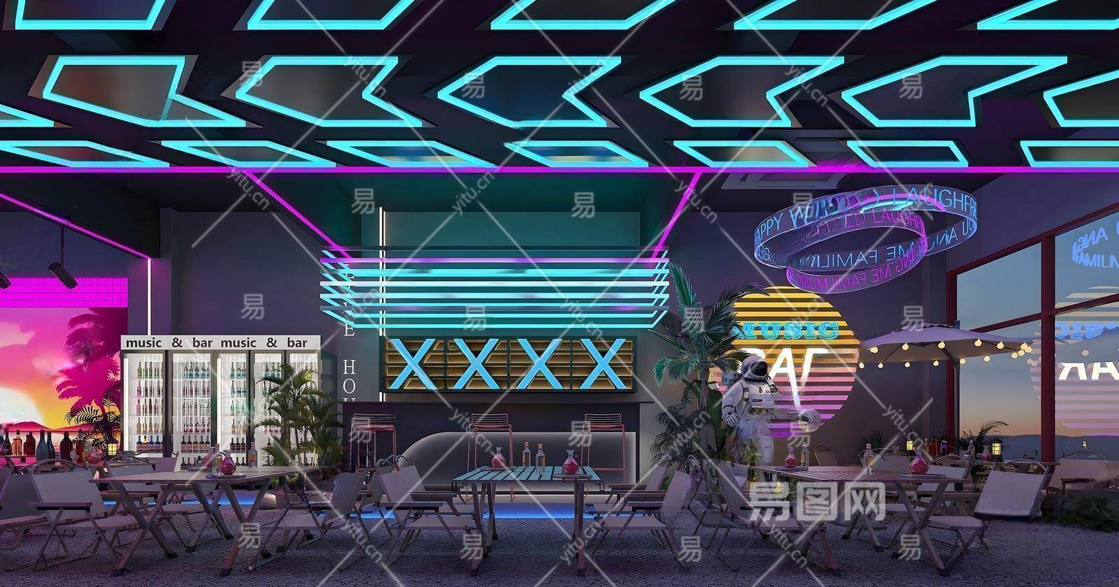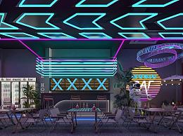 现代赛博朋克酒吧 露营帐篷 舞台 灯光墙饰