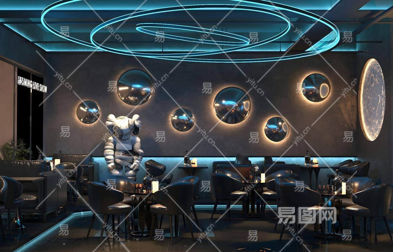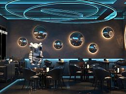 现代酒吧 沙发桌椅 酒吧台 射灯吊灯 立柜冰箱