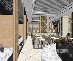酒店青岛餐饮SU模型下载_sketchup草图大师SKP模型