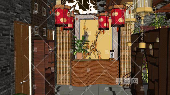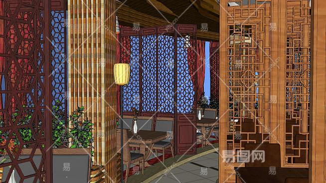 中式餐厅古典风格装修SU模型下载_sketchup草图大师SKP模型