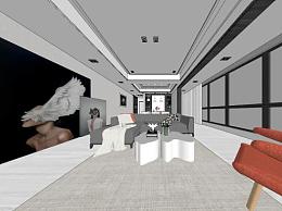 现代客餐厅简洁装修SU模型下载_sketchup草图大师SKP模型