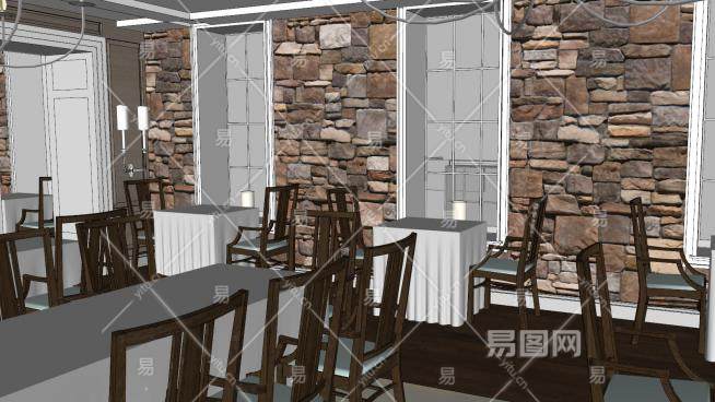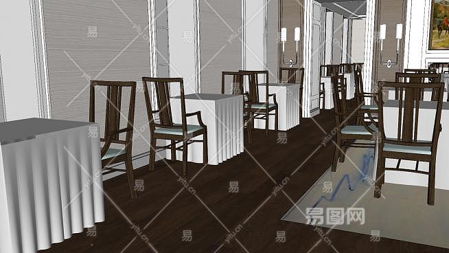 酒店餐厅装修SU模型下载_sketchup草图大师SKP模型