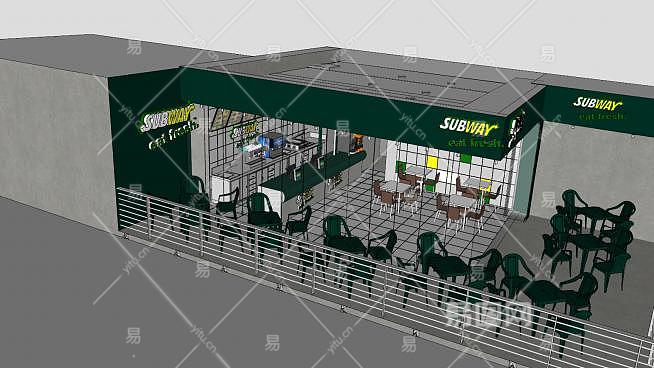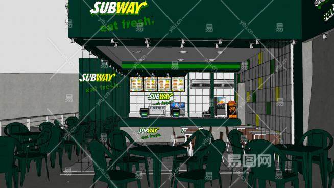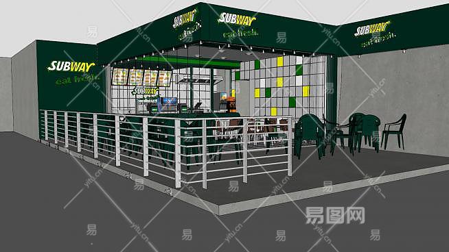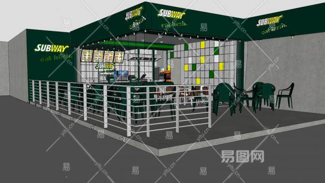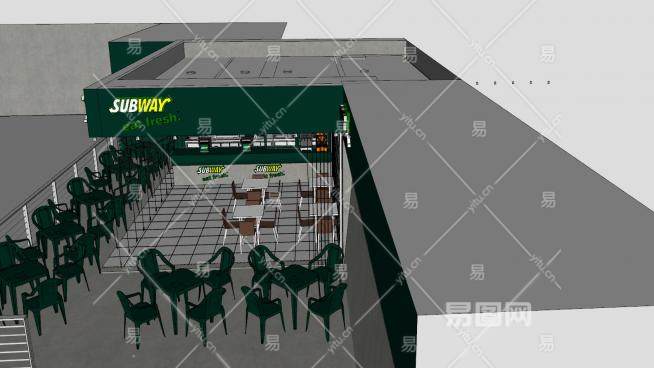 快餐店餐饮装修SU模型下载_sketchup草图大师SKP模型