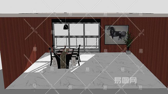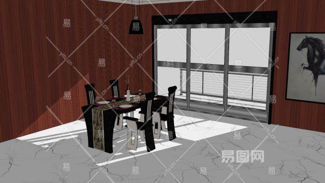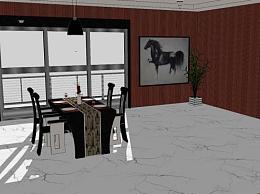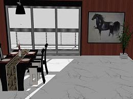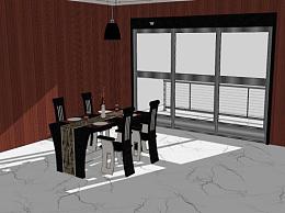 欧式西餐窗边装修SU模型下载_sketchup草图大师SKP模型