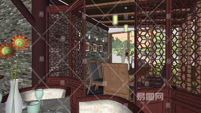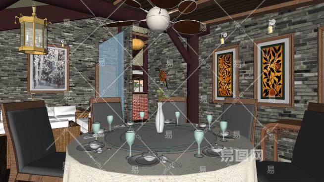 现代中式餐厅设计SU模型下载_sketchup草图大师SKP模型