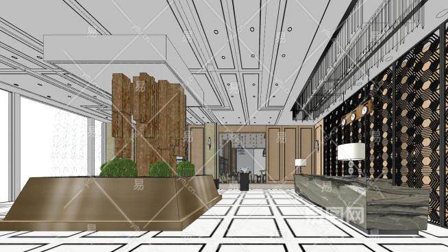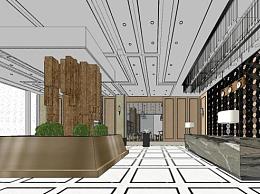 现代工业风酒店大堂SU模型下载_sketchup草图大师SKP模型