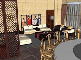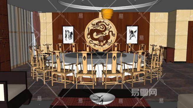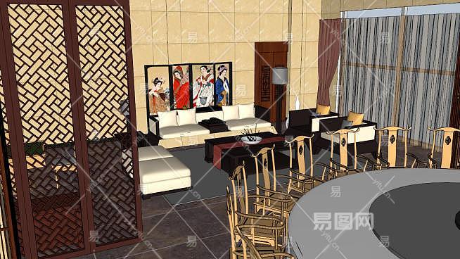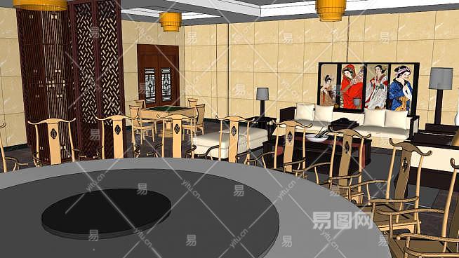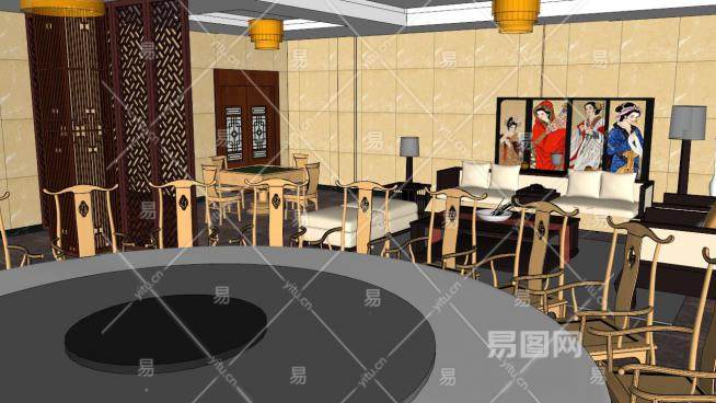 中式宴会厅包厢SU模型下载_sketchup草图大师SKP模型