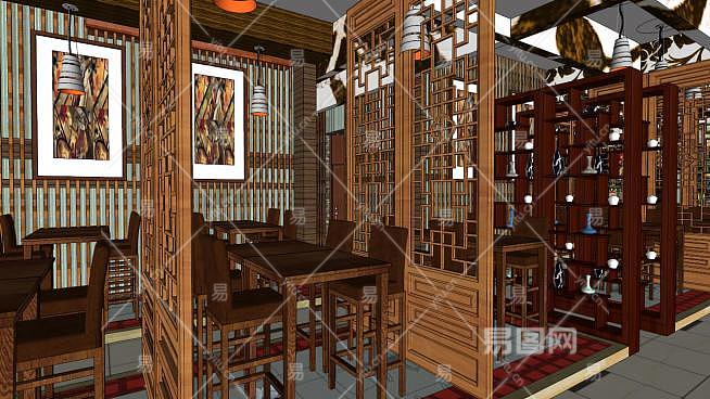 中式火锅店su模型下载_sketchup草图大师SKP模型