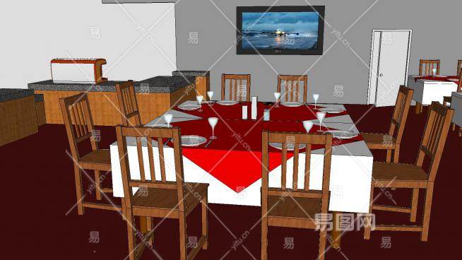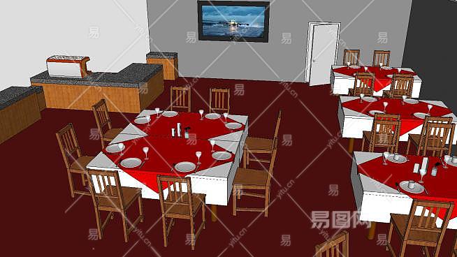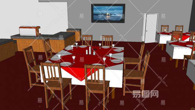 大学餐厅装修SU模型下载_sketchup草图大师SKP模型