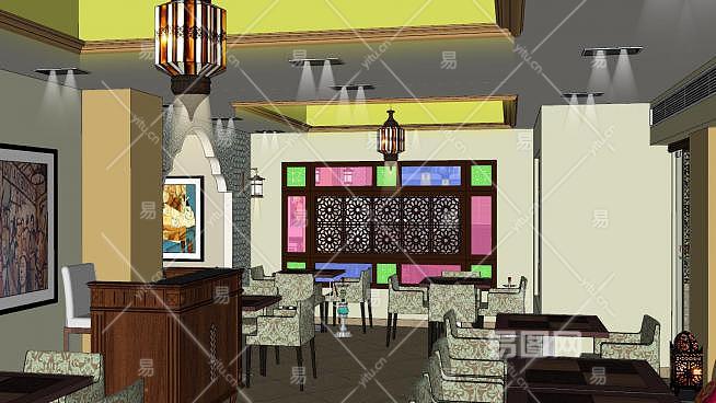 欧式西餐厅SU模型下载_sketchup草图大师SKP模型