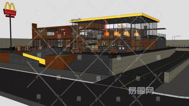 美式麦当劳快餐厅SU模型下载_sketchup草图大师SKP模型