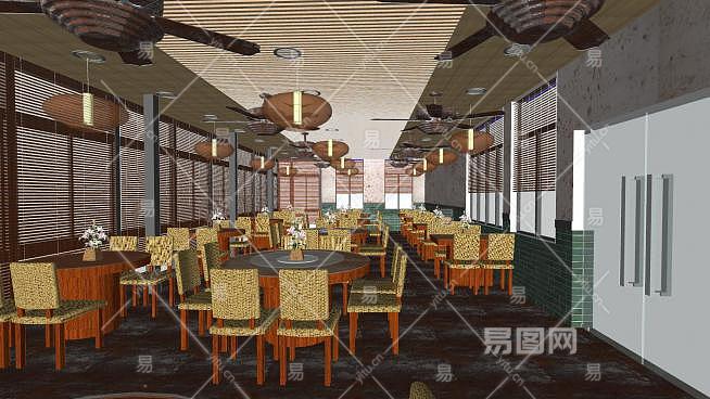 中式风格餐厅室内SU模型下载_sketchup草图大师SKP模型
