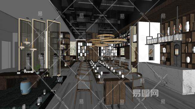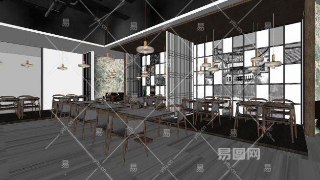 日式大型酒店餐厅SU模型下载_sketchup草图大师SKP模型