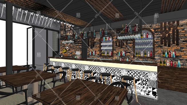 工业风清吧设计SU模型下载_sketchup草图大师SKP模型