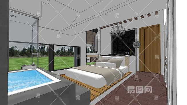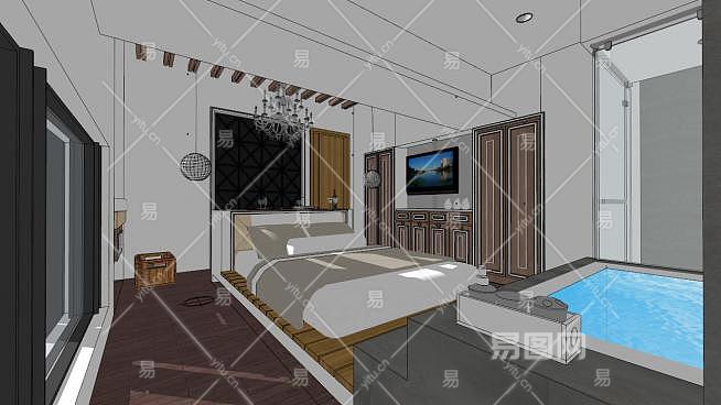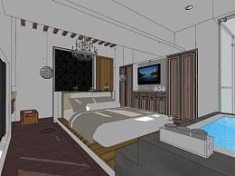 酒店房间豪华装修SU模型下载_sketchup草图大师SKP模型