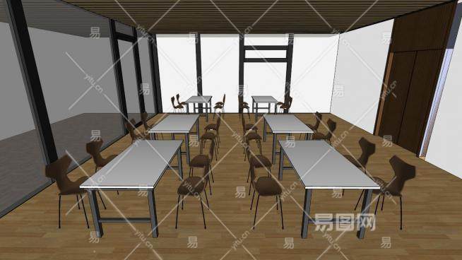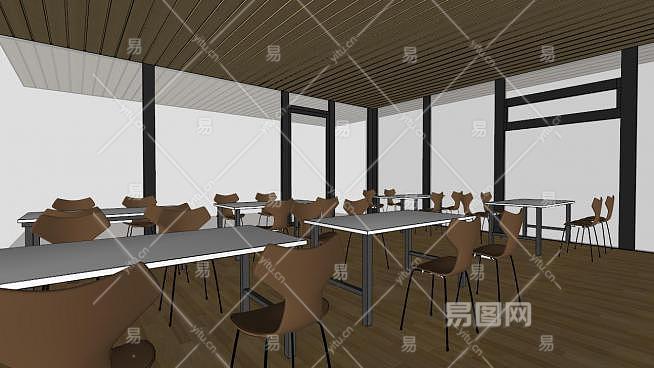 湖边餐厅空间SU模型下载_sketchup草图大师SKP模型