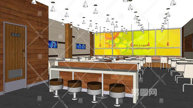 现代速食餐饮店SU模型下载_sketchup草图大师SKP模型